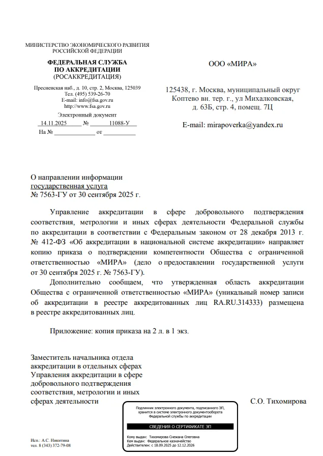 Отличная компания. В компанию «МИРА» обратилась неделю назад за своевременной проверкой счётчика. Оставила заявку, на следующий день со мной связались, очень вежливо уточнили все детали. И в необходимое время сотрудник компании уже был у меня. Все сделал минут за 30. Нареканий нет. Спасибо большое за быструю и качественно выполненную работу!